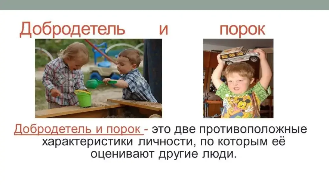 Добродетель и порок - это две противоположные характеристики личности, по которым её оценивают другие люди.