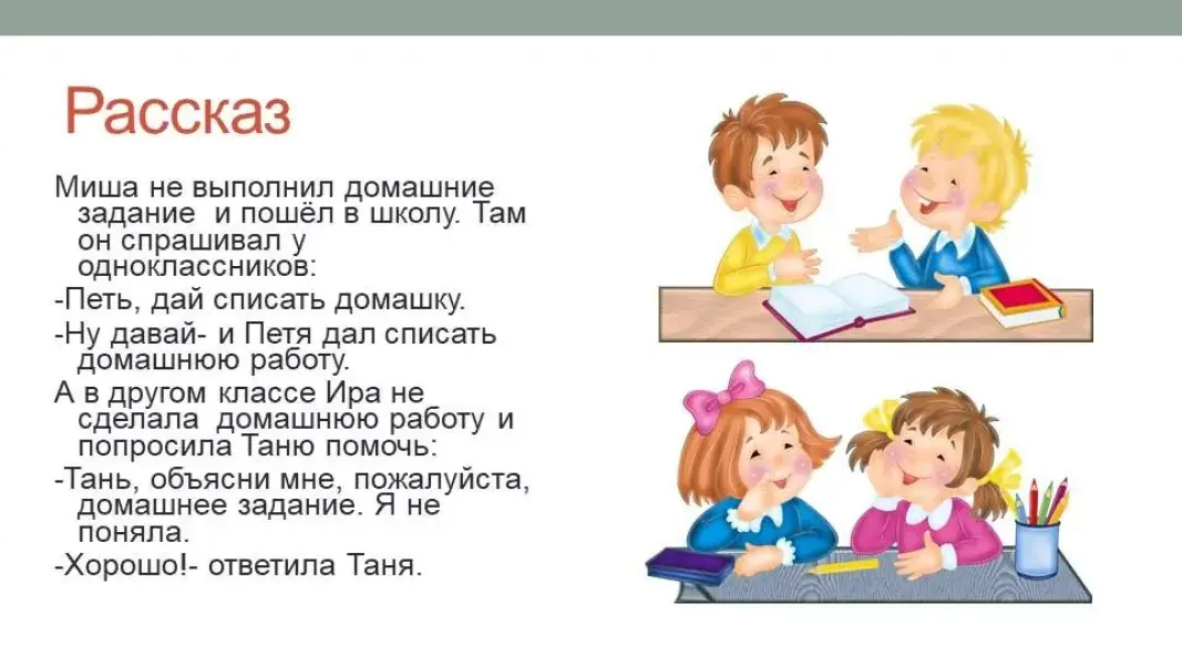 А в другом классе Ира не сделала домашнюю работу и попросила Таню помочь:
