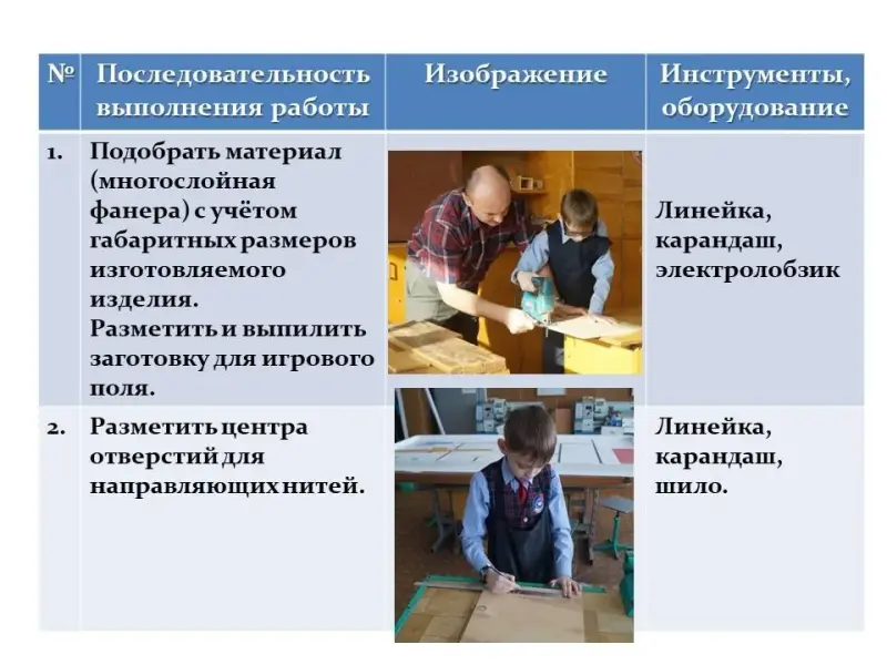 В процессе изготовления игры, из-за отсутствия навыков по деревообработке, столярные операции пиление, шлифование, сверление, зенкование я выполнял с папой.