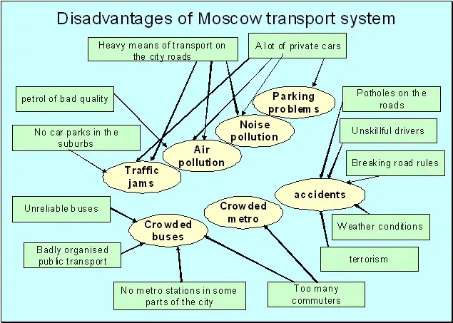 Дискуссии о недостатках московской транспортной системы, поднявшие большое количество вопросов, вызвали оживленное обсуждение, так как эти проблемы непосредственно связаны с повседневной жизнью учащихся. Данные схемы учат логически выстраивать устные высказывания, заставляют задуматься о проблемах города, формируя правильную гражданскую позицию.