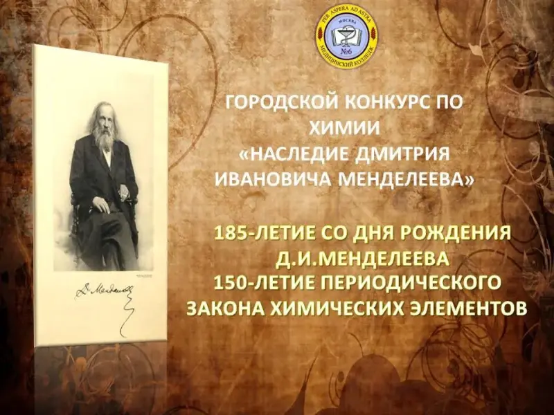 Методическая разработка городского конкурса по химии «Наследие Дмитрия Ивановича Менделеева», посвященного 185-летию со дня рождения Д.И.Менделеева и 150-летию открытия периодического закона