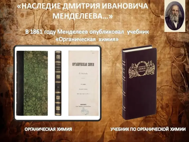 В 1861 году опубликовал «Органическую химию» - первый русский учебник по этой дисциплине. (Слайд 10)