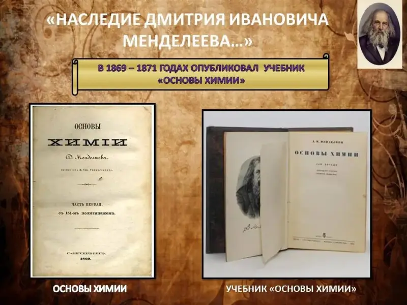 Периодический закон Менделеев опубликовал в учебнике «Основы химии» - первое систематизированное изложение неорганической химии. (Слайд 13)