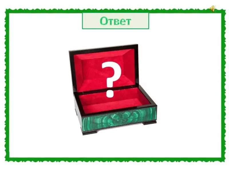 Представлена малахитовая шкатулка и вопрос.
