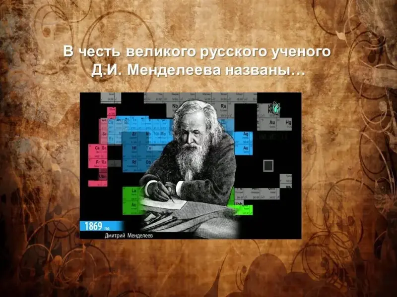 4. В честь великого русского ученого Д.И.Менделеева названы….