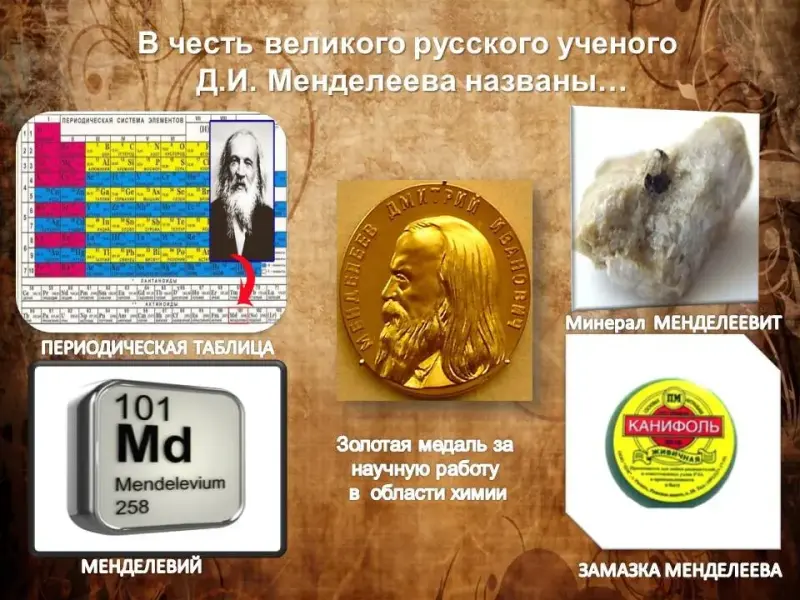 Продолжите этот список, что в честь великого русского ученого Д.И.Менделеева названо…».