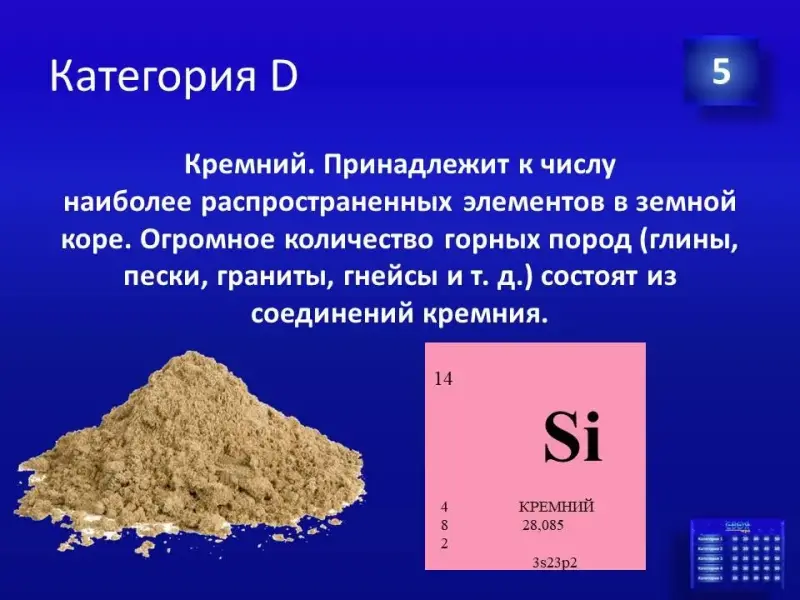 - Преобладающий отрицательный ион в организме, участвует в создании мембранных потенциалов клеток, осмотического давления, процессах возбуждения и торможения в нервных клетках. Этот элемент входит в состав сыпучего продукта, который есть на каждой кухне. В пищеварении важная роль принадлежит минеральной кислоте желудочного сока, в состав которого входит этот элемент.