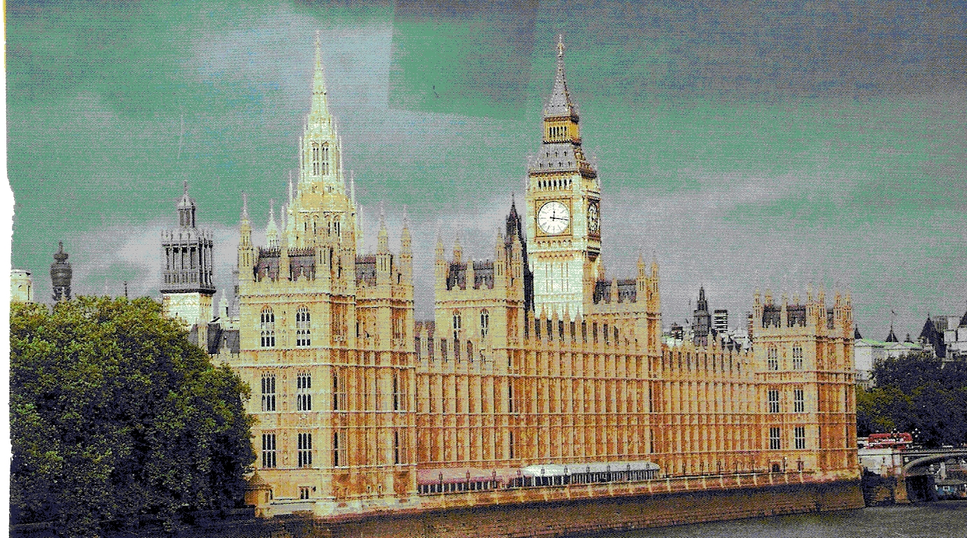 На набережной Темзы стоит очень красивое здание Парламента (the Houses of Parliament), в котором работает правительство Великобритании. (Рисунок 2). Издалека видна его башня с главными часами страны, которые называются Биг-Бен (Большой Бен») (Рисунок 3). У этих часов 4 циферблата. А длина минутных стрелок превышает 4 метра!