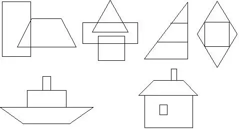 - Имеется часть фигуры, достройте его до квадрата, прямоугольника, трапеции.