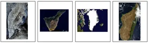 1. Определите географические объекты по картам из космоса и подпишите их: (Канарские о-ва., Тенерифе; о.Гренландия; п-ов Камчатка; о.Мадагаскар).