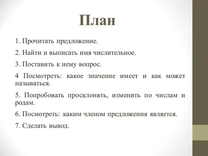 - Научиться находить имена числительные в речи, определять морфологические признаки и синтаксическую роль.