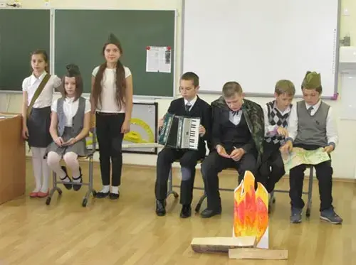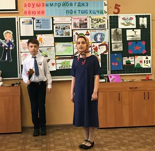Учитель: Миллионы погибли, чтобы на земле был вечный мир. Поэтому так щемит сердце, когда слышишь сообщения о войнах.