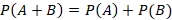 Теорема сложения вероятностей несовместных событий. Вероятность того, что произойдёт одно из двух несовместных событий, равна сумме вероятностей этих событий: