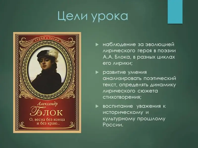- обобщить полученные результаты наблюдений и сформулировать суть и направление эволюции образа лирического героя поэзии А.А.Блока.