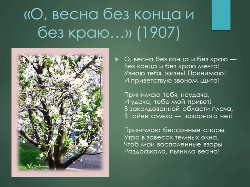 Стихотворение «О, весна без конца и без краю…» (1907)