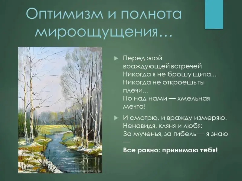 - Внутреннее состояние лирического героя в финале стихотворения? (Надежда на счастье недостижима. Рождается предчувствие смерти)