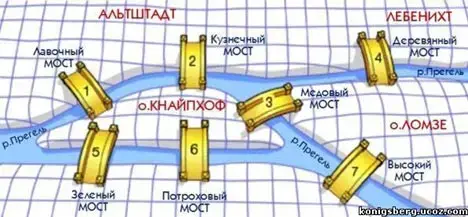 кончался бы на том же берегу, где и начинался, проходил бы по всем мостам, но по каждому мосту - только один раз. С давних времен жители Кенигсберга бились над загадкой: можно ли пройти по всем