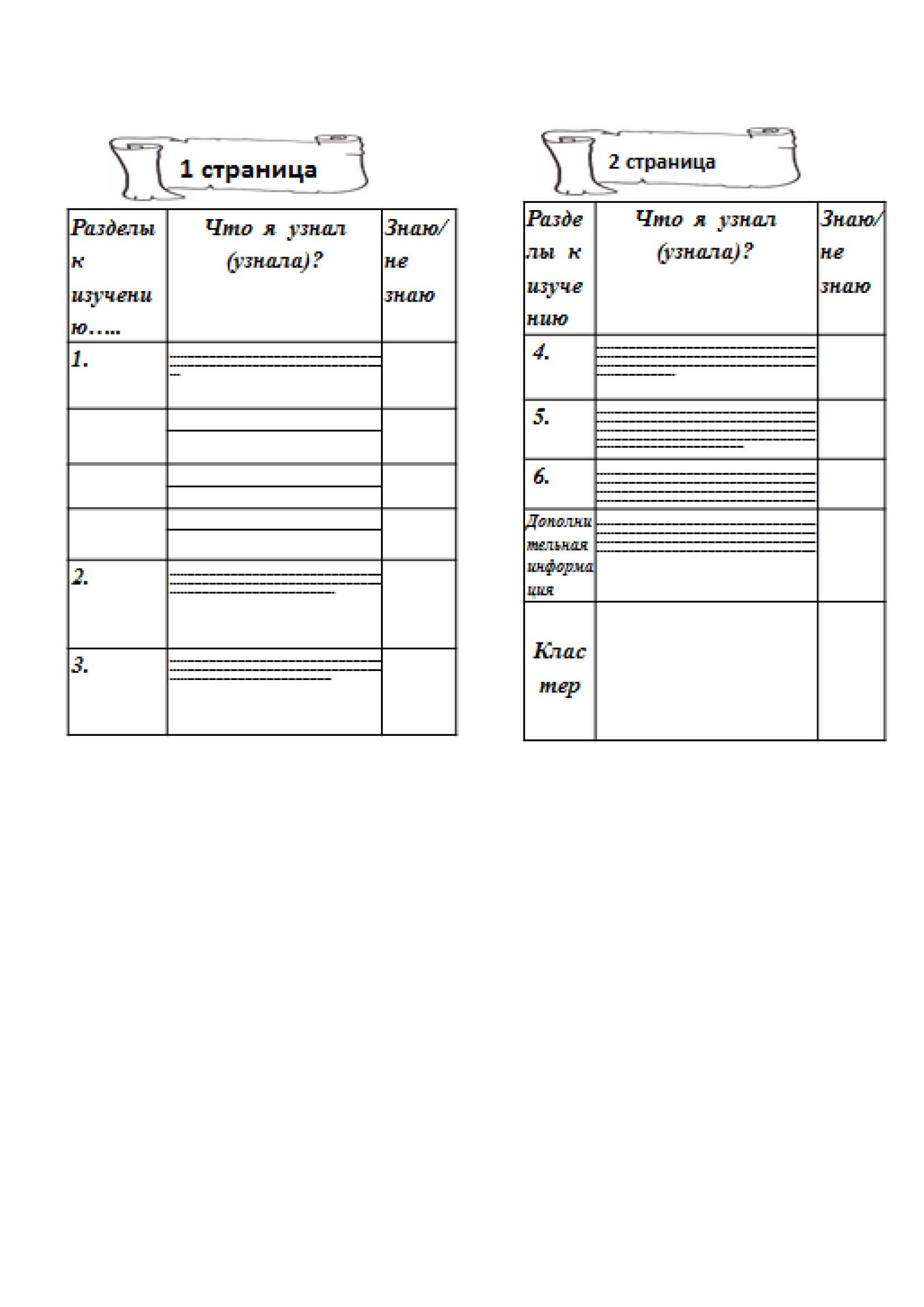 а) записывают что они знают по данному разделу и что предстоит узнать;