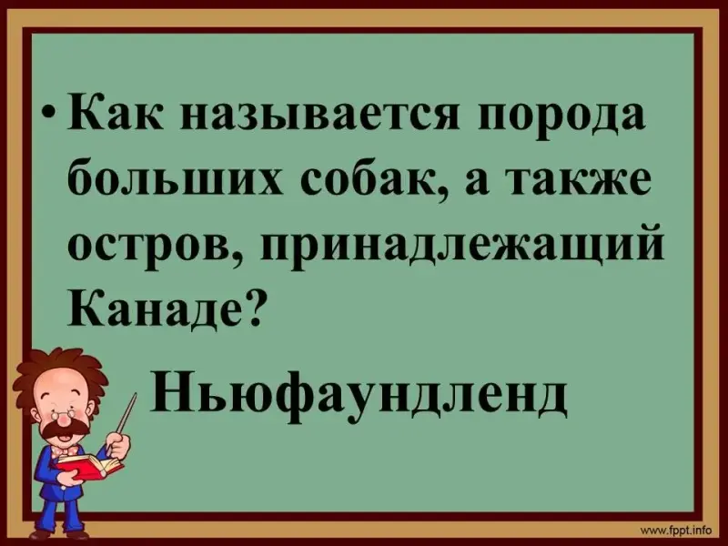 5. Как называется порода больших собак, а также остров, принадлежащий Канаде? Ньюфаундленд
