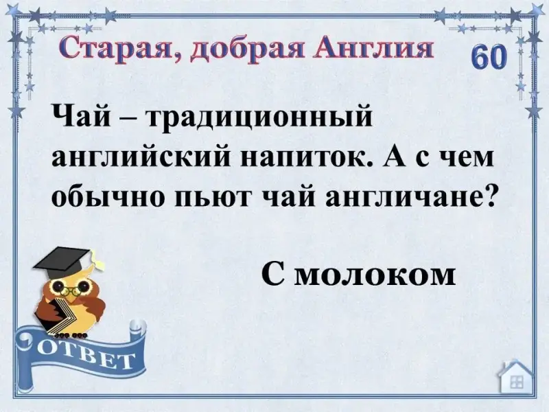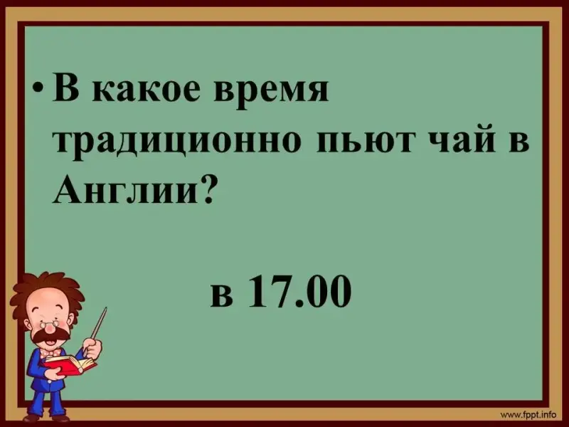 20. В какое время традиционно пьют чай в Англии? В 17.00