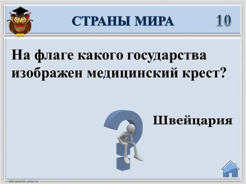 1. На флаге какого государства изображен медицинский крест? Швейцария