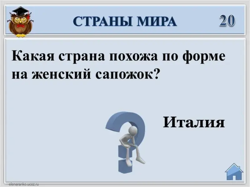 2. Какая страна похожа по форме на женский сапожок? Италия