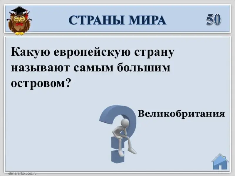 5. Какую европейскую страну называют самым большим островом? Великобритания
