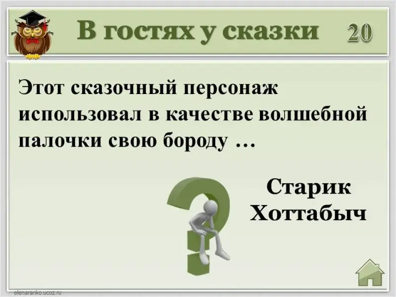 2. Этот сказочный персонаж использовал в качестве волшебной палочки свою бороду? Старик Хоттабыч