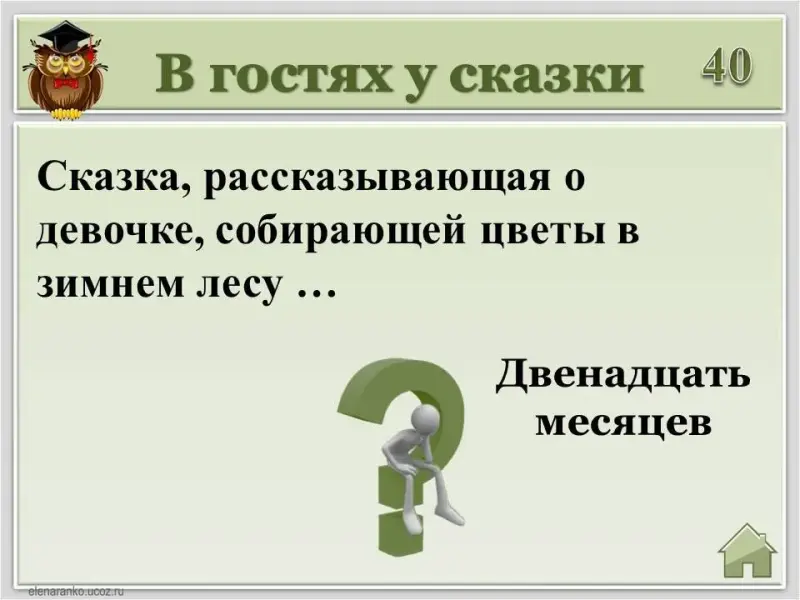 4. Сказка, рассказывающая о девочке, собирающей цветы в зимнем лесу? Двенадцать месяцев