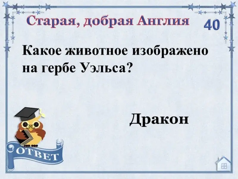 2. Какое животное изображено на гербе Уэльса? Дракон