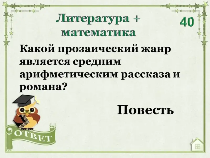 2. Какой прозаический жанр является средним арифметическим рассказа и романа? Повесть