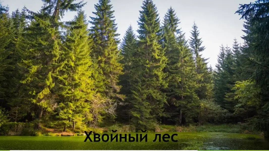 Открываются слайды: хвойный лес, лиственный лес, смешанный лес.