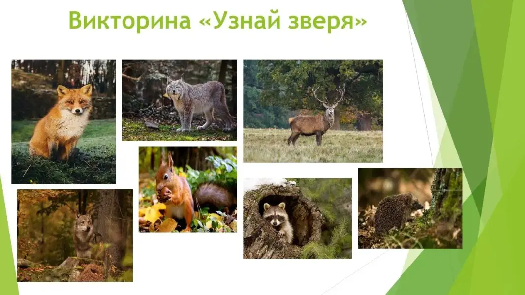 Учитель. - А сейчас давайте вспомним ещё одну группу лесного сообщества - зверей. Ведь лес - дом не только для птиц, но и для зверей. Много в лесу разных животных и больших, и маленьких. Узнаете ли вы их?
