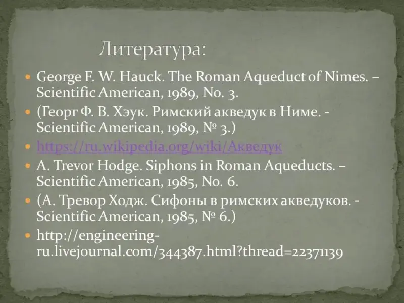 Презентация выполнена по работе, взятой с сайта https://istina.msu.ru/media/publications/article/017/604/721038/Akveduki_2004-5.pdf