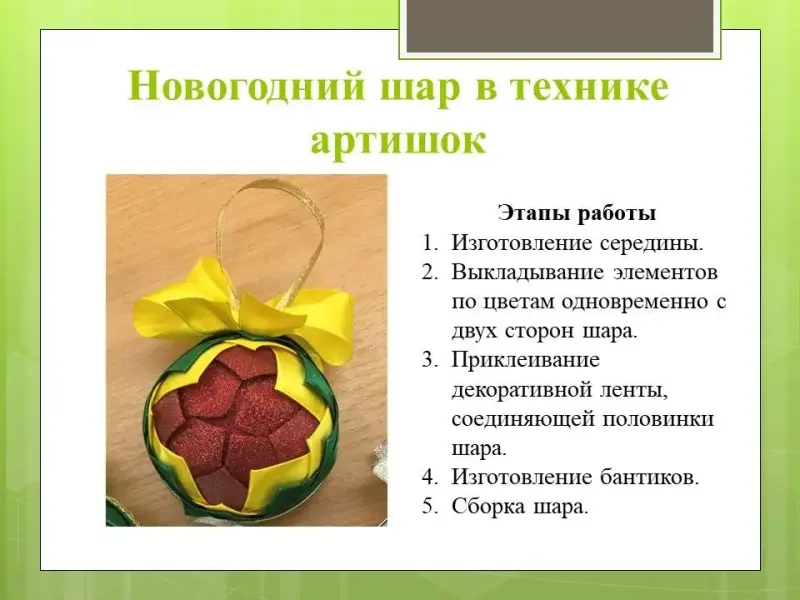 Цель: обучение технологии изготовления новогоднего шара в технике артишок.