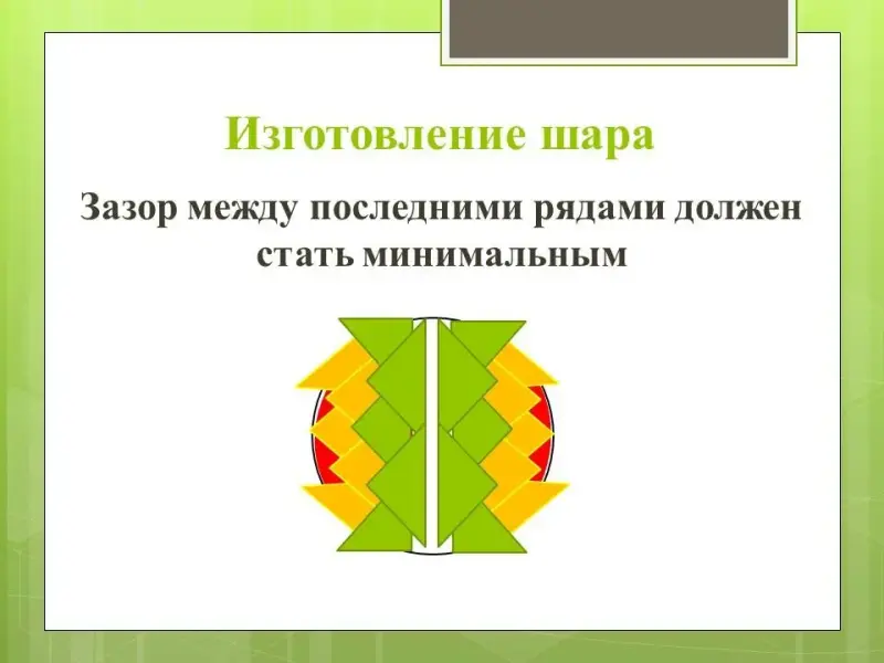 Перед выполнением каждого этапа сообщается его содержание. Самостоятельная работа проходит с опорой на презентацию, а также на схемы изготовления шара (приложение 1).