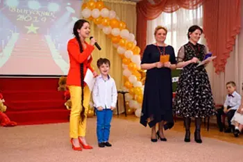 Ведущий 1: Вот и промчались пять лет пребывания наших детей в детском саду. Ступенька за ступенькой они подошли к этому рубежу - выпуску из детского сада. Родители и педагоги переживали за вас, но все волнения позади.