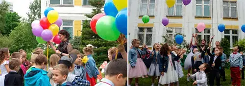 Ведущий 1. А сейчас, дорогие ребята, я вас приглашаю на церемонию прощания с детством, запуск воздушных шаров в небо. Отпуская шарик в небо, надо загадать самое-самое заветное желание, и оно обязательно исполнится.