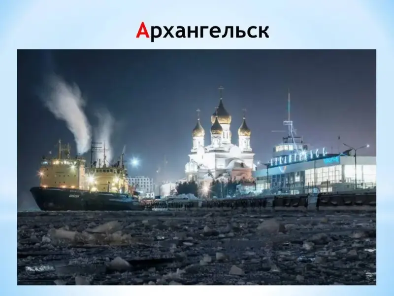 (Слайд 3) Это Северный город - порт! Не далеко от Белого моря. В одноименный порт заходя и простые суда и даже ледоходы и ледоколы! Этот город называется? Архангельск! (Слайд 4) Какой первый звук в названии города? Давайте скажем его вместе. И вспомним букву, которая обозначает этот звук! Напишем ее в воздухе указательным пальцем правой руки.