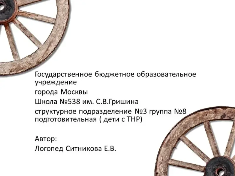 Конспект непосредственной познавательной деятельности в подготовительной логопедической группе для детей с тяжелым нарушением речи. Колесо – величайшее изобретение человечества. Использование колеса в транспорте