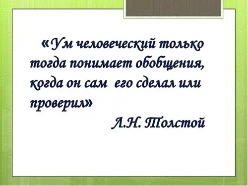-Начинаем урок алгебры. Сегодня вы будете исследователями! Желаю вам удачи, хорошего настроения и взаимопонимания! Девизом урока пусть будут слова Л. Н. Толстого. Слайд 1.