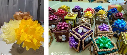 Ведущий: Какие красивые, разные, замечательные цветы у вас получились. Они украсят любой дом. Если будет желание, можете сделать большие букеты дома.