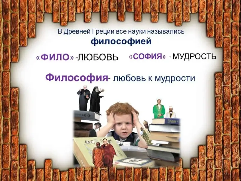 В Древней Греции все науки назывались философией. Слово «философия» состоит из двух слов «фило» - любовь и «софия» - мудрость. Вот и получается, что философия в переводе с древнегреческого - любовь к мудрости.