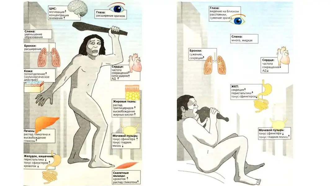 - Большинство внутренних органов имеет двойную иннервацию - симпатическую и парасимпатическую. Чаще всего они оказывают противоположное действие на органы.