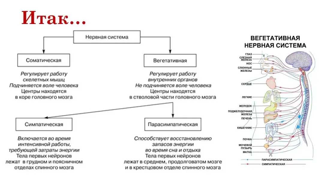 Урок на тему «Соматический и вегетативный отделы нервной системы»