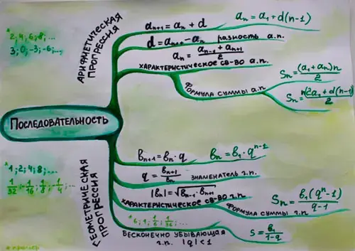 Ученики могут использовать такую карту для конспектирования материала, составления плана своего ответа, графического отображения изучаемых концепций. Обучив ребят методу составления ментальных карт, у меня получился своего рода набор разнообразных ментальных карт по различным разделам математики. Наиболее интересные карты, составленные учащимися выпускных классов, я предлагаю вашему вниманию.
