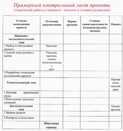 - Подготовка к выполнению своего творческого проекта (поделки).