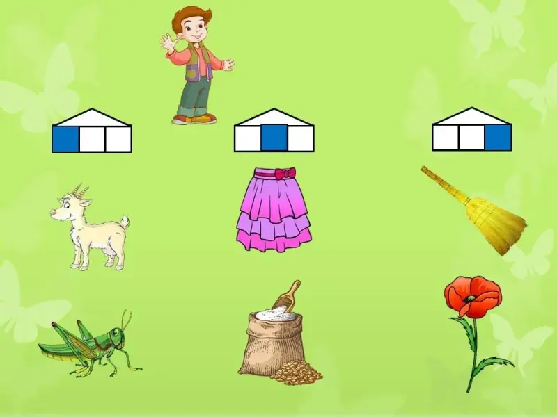 [слайд 4]. Теперь Коля приготовил нам 3 домика. В первом будут жить картинки со звуком «К» в начале слова. Во втором - в середине. В третьем - в конце. Вспомните какие у нас были картинки. Теперь подумаем, а какие мы поселим в первый домик? Назовите. Какие во второй? Какие в третий?