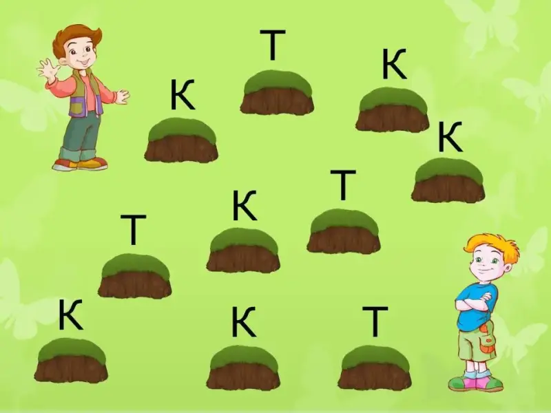 Дифференциация звуков и букв "К"–"Т". "В гости к Коле и Толе"