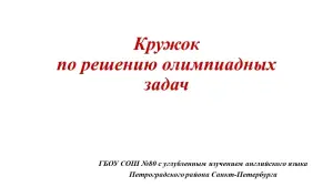 В нашей школе углубленно изучается английский язык. Соответственно распределяется и время, отведенное для его изучения, и учебная нагрузка, и внимание учеников и их родителей. Поэтому существуют вполне объяснимые трудности в привлечении интереса к другим предметам. Тем не менее, ребята, чьи способности могут быть раскрыты на уроках математики, вполне могут рассчитывать на особое внимание к их возможностям. В нашей школе регулярно проводятся Недели различных предметов, праздники, посвященные датам, связанным с достижениями в различных научных сферах. Моей же задачей было организовать школьников, начиная с пятого класса, для решения задач, уровнем позволяющих им участвовать в олимпиадах по предмету различного ранга.